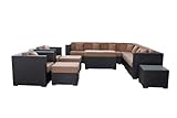 This outstanding outdoor living set is perfect when entertaining or for everyday relaxation. The pieces set can be moved or adjusted in many configurations. This sophisticated modern outdoor wicker living set combines value and style. The set features Washable & water resistant Cushion Covers with an easy zipper for removing the covers for cleaning. The frame is woven with UV resistant and waterproof PE rattan. The Powder Coated Aluminum Frame protects against corrosion. This stylish set is perfect for everyday use. - Modular set can be arranged in many configurations - Washable, water-resistant cushion covers - Woven with UV resistant and waterproof PE rattan - Powder-coated aluminum frame This outdoor set includes: - 2 x sofa 33"(W) x 30"(H) x 38"(D) - 1 x right loveseat 33"(W) x 30"(H) x 61"(D) - 1 x left loveseat 33"(W) x 30"(H) x 61"(D) - 1 x corner sofa 33"(W) x 30"(H) x 33"(D) - 2 x armless sofa's 33"(W) x 30"(H) x 28"(D) - 2 x footrest 26"(W) x 12"(H) x 26"(D) - 1 x tea table 24"(W) x 12"(H) x 43"(D) - 1 x side tables 24"(W) x 18"(H) x 24"(D) Read more