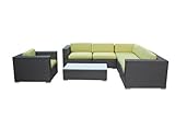 This outstanding outdoor sectional set is the perfect solution to your outdoor seating needs! Perfect when entertaining or for everyday relaxation, this modular sofa set can be moved or adjusted in dozens of configurations. Move seats apart for separate chairs or put them together for intimate sofa seating. This sophisticated modern outdoor wicker sofa set combines value and style. Includes: 3 x corner sofa 41.5" W | 41.5" D | 28.5" H 2 x middle sectional 23.5" W | 41.5" D | 28.5" H 1 x armchair 41.5" W | 41.5" D | 28.5" H 1 x coffee table 25.5" W | 43" D | 12" H Features: * Woven with UV resistant and waterproof PE rattan. * Our sponges are all waterproof and of medium density, ensuring the best mix of value and comfort for your outdoor use. * Powder Coated Aluminum Frame are protected against corrosion. * Washable & water resistant Cushion Covers * 5mm thick glass * Item ships via Freight Wicker Color: Espresso - Cushion Color: Peridot Read more