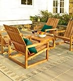 Outdoor Wood Cocktail Table and 4 Deep Lounge Seating Chairs Set