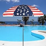 The 7.5 ft diameter with 8 rib canopy is made from 9oz awning/marine grade acrylic fabric (100% solution-dyed) and blocks 98% of harmful UV rays and more resistant to tearing, fading, moisture, mold, and mildew.Pole Height 92 inches.UV sun protection factor 50+