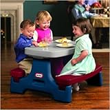 Outdoor Toys by Little TikesFill the backyard with the sound of childhood delight with outdoor toys from Little Tikes. We have outdoor playgrounds and playhouses that combine safety and durability with fun! There are several options for all ages, with or without a swing set. Also take a look at several outdoor picnic tables. Don8217;t forget the Classic Turtle Sandbox 8211; one of our top sellers. Make sure to get your child8217;s outdoor play toys from a trusted toy maker for over 30 years: Little Tikes. This clever folding and "locking" table is sized right for four little ones and a day full of indoor or outdoor activities. Features: No tools are required for setup or takedown. Portable, lightweight design is perfect for taking on trips, or storing away neatly. Kids like the Backyard Naturals colors that blend in well with any backyard dcor. (Dishes not included.) Ages 1.5 to 5 years. Hole is for market umbrella (not included) Toys Made in the USASpecifications:Overall Dimensions: 18.5"H x 29.5"W x 25.3"D Read more