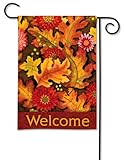 Welcome visitors this fall with this Autumn Sonata garden flag from BreezeArt . With colorful autumn flowers and leaves, this two-sided message flag makes a great fall decoration. Pick up the matching banner flag and mailbox cover and make a set out of it! Measures: 12.5" x 18" Read more