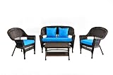 4pc Espresso Wicker Conversation Set - Turquoise Cushions